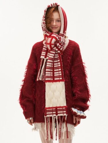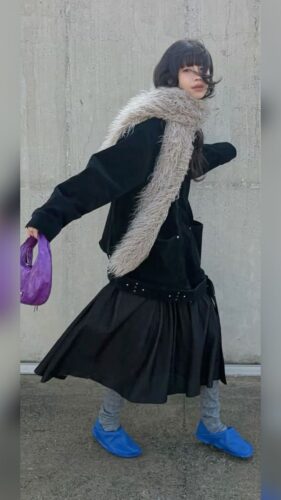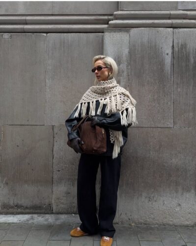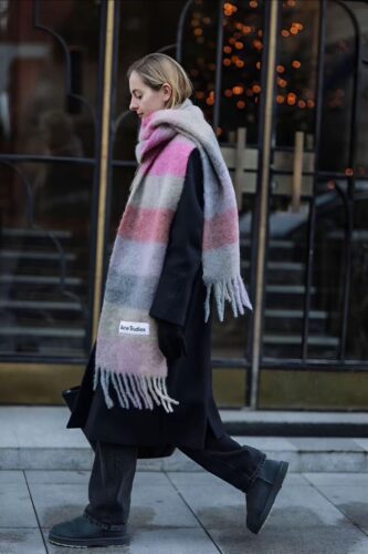 フリンジのついたデザインやワンカラーではなくデザイン性の高いマフラーを取り入れることでマフラーをメインにコーデを楽しむという着方もできます!