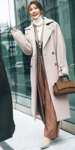 まず、冬カラーとは深みのあるバーガンディ(ボルドー)やブラウン系が中心で、上品さと温かみを演出します。寒い中寒そうな服は着たくないですよね、、あまり寒色でコーデをまとめないのがポイントになってきます。